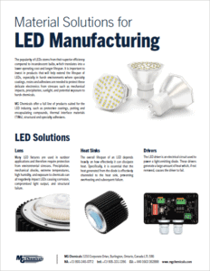 The popularity of LEDs stems from their superior efficiency compared to incandescent bulbs, which translate into a lower operating cost and longer lifespan. It is important to invest in products that will help extend the lifespan of LEDs, especially in harsh environments where specialty coatings, resins and adhesives are needed to protect these delicate electronics from stresses such as mechanical impacts, precipitation, sunlight, and potential exposure to harsh chemicals. MG Chemicals offer a full line of products suited for the LED industry, such as protective coatings, potting and encapsulating compounds, thermal interface materials (TIMs), structural and specialty adhesives.